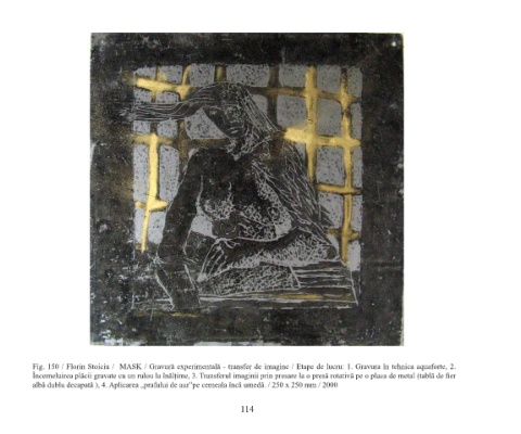 Fig. 150 / Florin Stoiciu / MASK / Gravură experimentală - transfer de imagine / Etape de lucru: 1. Gravura în tehnica aquaforte, 2.