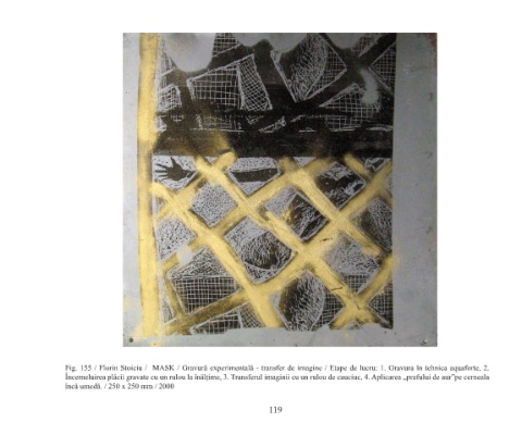 Fig. 155 / Florin Stoiciu / MASK / Gravură experimentală - transfer de imagine / Etape de lucru: 1. Gravura în tehnica aquaforte, 2.