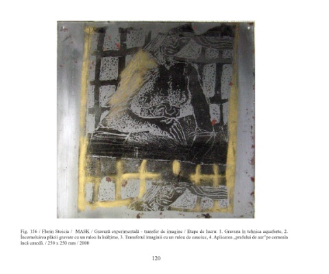 Fig. 156 / Florin Stoiciu / MASK / Gravură experimentală - transfer de imagine / Etape de lucru: 1. Gravura în tehnica aquaforte, 2.
