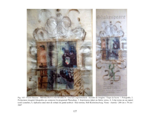 Fig. 163 / Florin Stoiciu / MENSChEN UND MASKEN / Gravură experimentală - transfer de imagine / Etape de lucru: 1. Fotografie, 2.