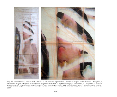 Fig. 164 / Florin Stoiciu / MENSChEN UND MASKEN / Gravură experimentală - transfer de imagine / Etape de lucru: 1. Fotografie, 2.