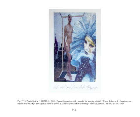 Fig. 171 / Florin Stoiciu / MASK 4 - 2010 / Gravură experimentală - transfer de imagine digitală / Etape de lucru: 1. Imprimare cu