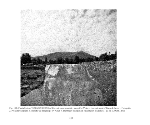 Fig. 192 / Florin Stoiciu / SARMIZEGETUSA / Gravură experimentală - stampă în Z* Acryl (gravură plană ) / Etape de lucru: 1. Fotografie,