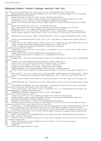 Bibliografie (Referiri / Articole / Cataloage / Interviuri / Web - site)