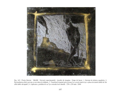 Fig. 143 / Florin Stoiciu / MASK / Gravură experimentală - transfer de imagine / Etape de lucru: 1. Gravura în tehnica aquaforte, 2.
