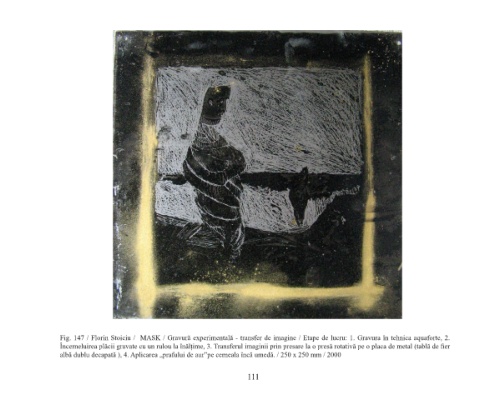 Fig. 147 / Florin Stoiciu / MASK / Gravură experimentală - transfer de imagine / Etape de lucru: 1. Gravura în tehnica aquaforte, 2.
