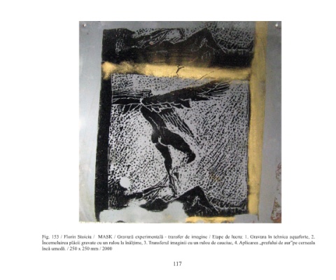 Fig. 153 / Florin Stoiciu / MASK / Gravură experimentală - transfer de imagine / Etape de lucru: 1. Gravura în tehnica aquaforte, 2.