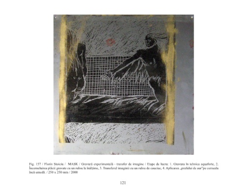 Fig. 157 / Florin Stoiciu / MASK / Gravură experimentală - transfer de imagine / Etape de lucru: 1. Gravura în tehnica aquaforte, 2.