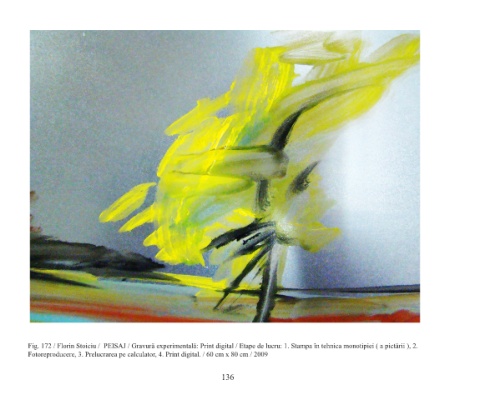 Fig. 172 / Florin Stoiciu / PEISAJ / Gravură experimentală: Print digital / Etape de lucru: 1. Stampa în tehnica monotipiei ( a pictării ), 2. Fotoreproducere, 3. Prelucrarea pe calculator, 4. Print digital. / 60 cm x 80 cm / 2009 136