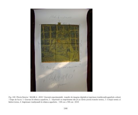 Fig. 180 / Florin Stoiciu / MASK 4 - 2010 / Gravură experimentală - transfer de imagine digitală și imprimare tradițională aquaforte colorat