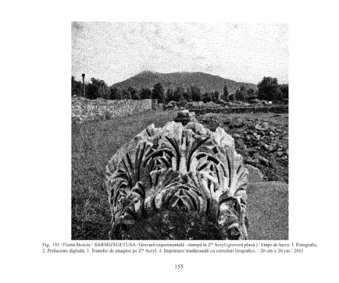 Fig. 191 / Florin Stoiciu / SARMIZEGETUSA / Gravură experimentală - stampă în Z* Acryl (gravură plană ) / Etape de lucru: 1. Fotografie,