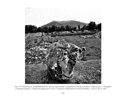 Fig. 193 / Florin Stoiciu / SARMIZEGETUSA / Gravură experimentală - stampă în Z* Acryl (gravură plană ) / Etape de lucru: 1. Fotografie,