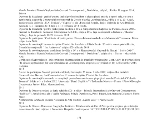 Diploma de excelenţă Uniunea Artiştilor Plastici din România – Filiala Buzău / Primăria municipiului Buzău,