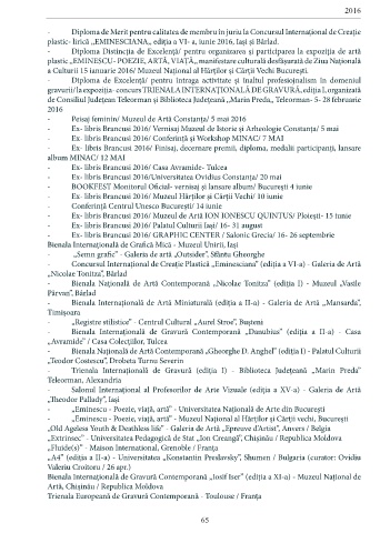 - Diploma Distincția de Excelență/ pentru organizarea și participarea la expoziția de artă