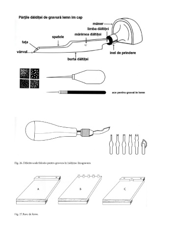 Fig. 26. Diferite scule folosite pentru gravura în înălțime. linogravura Fig. 27.Banc de lemn.