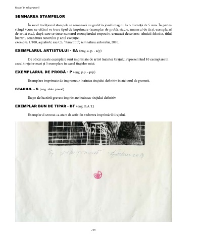 de artist etc.), după care se trece numarul exemplarului respectiv, urmează descrierea tehnicii folosite, titlul